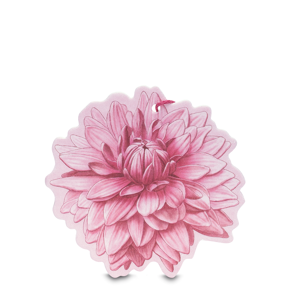 Un cartoncino profumato, dalla foggia di fiore di Dalia, ideale per profumare gli armadi, i cassetti o l’abitacolo dell’auto.