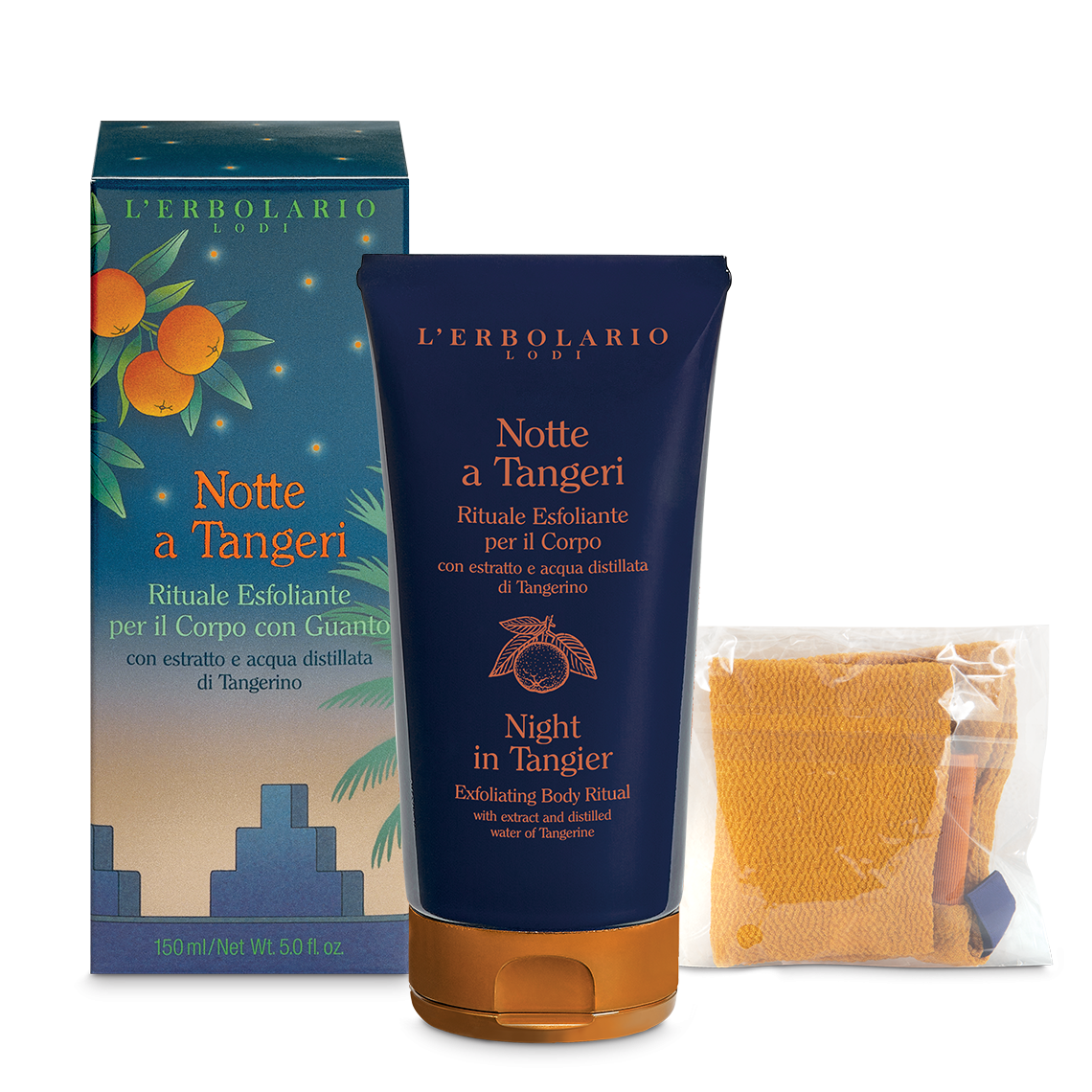 Si ispira all’affascinante tradizione dell’hammam marocchino questo speciale rituale di pulizia ed esfoliazione, composto da un guanto scrub e da una profumata Crema detergente arricchita con estratto di Tangerino e olio di Argan.  Applicato due volte alla settimana rinnova lo strato superficiale dell’epidermide, offrendo alla pelle una sensazione di impareggiabile benessere e un aspetto setoso e morbido.